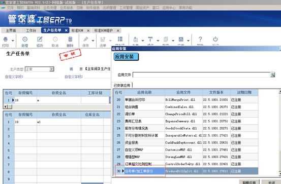 管家婆財工貿版本新推出插件【生產任務單/加工單拆分】,支持生產任務單和委外加工單拆分管理,方便用戶隨時調整。